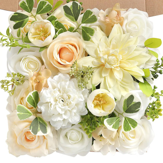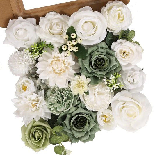 Artificial Flowers Combo Box - Set Fake Flowers Dahlia White Roses