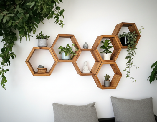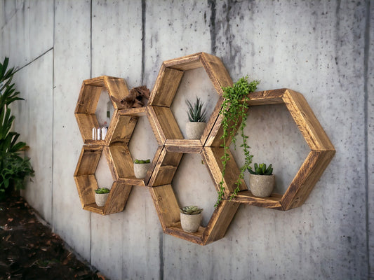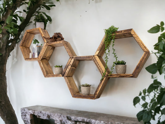 Floating Plant Shelves Hexagon Set - 5.5" Deep Wall Mounted Plant Display