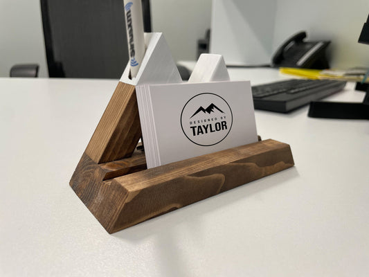 Business Card Holder, Wood Pen and Business Card Holder, Mountain Artwork, Desk Organizer, Office Gift