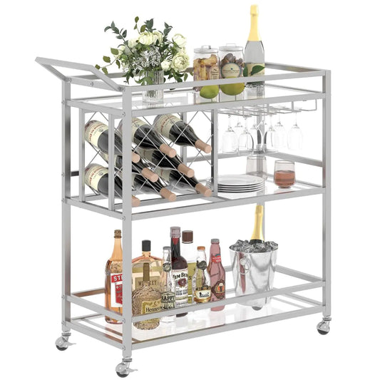 4-Tier Liquor Cart with Wine Rack - Mini Bar Cart