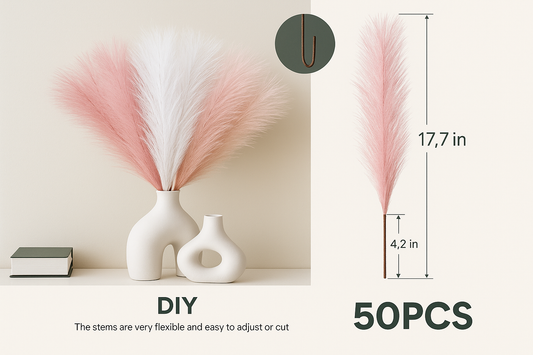 Pampas Grass - 50pcs - 17in Pink Faux Pampas Grass