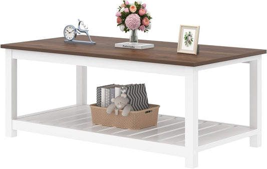 Farmhouse Coffee Table - 40 Inch White & Walnut