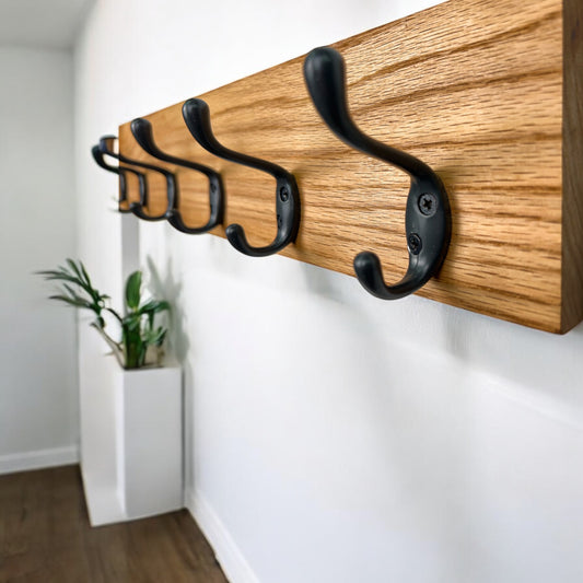 Solid Oak Wood Coat Rack