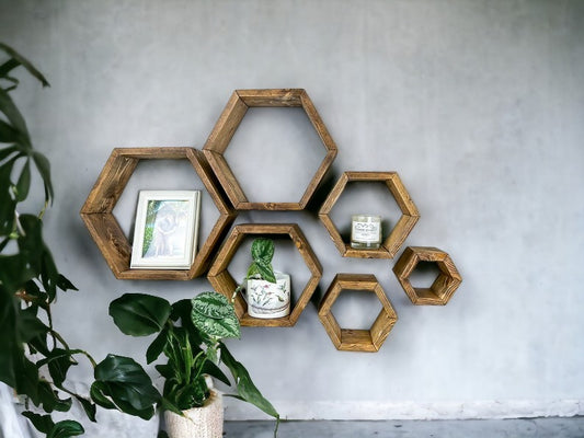 Hexagon Wall Shelves, Set of 6 Hexagon Shelves - 3.5" Depth