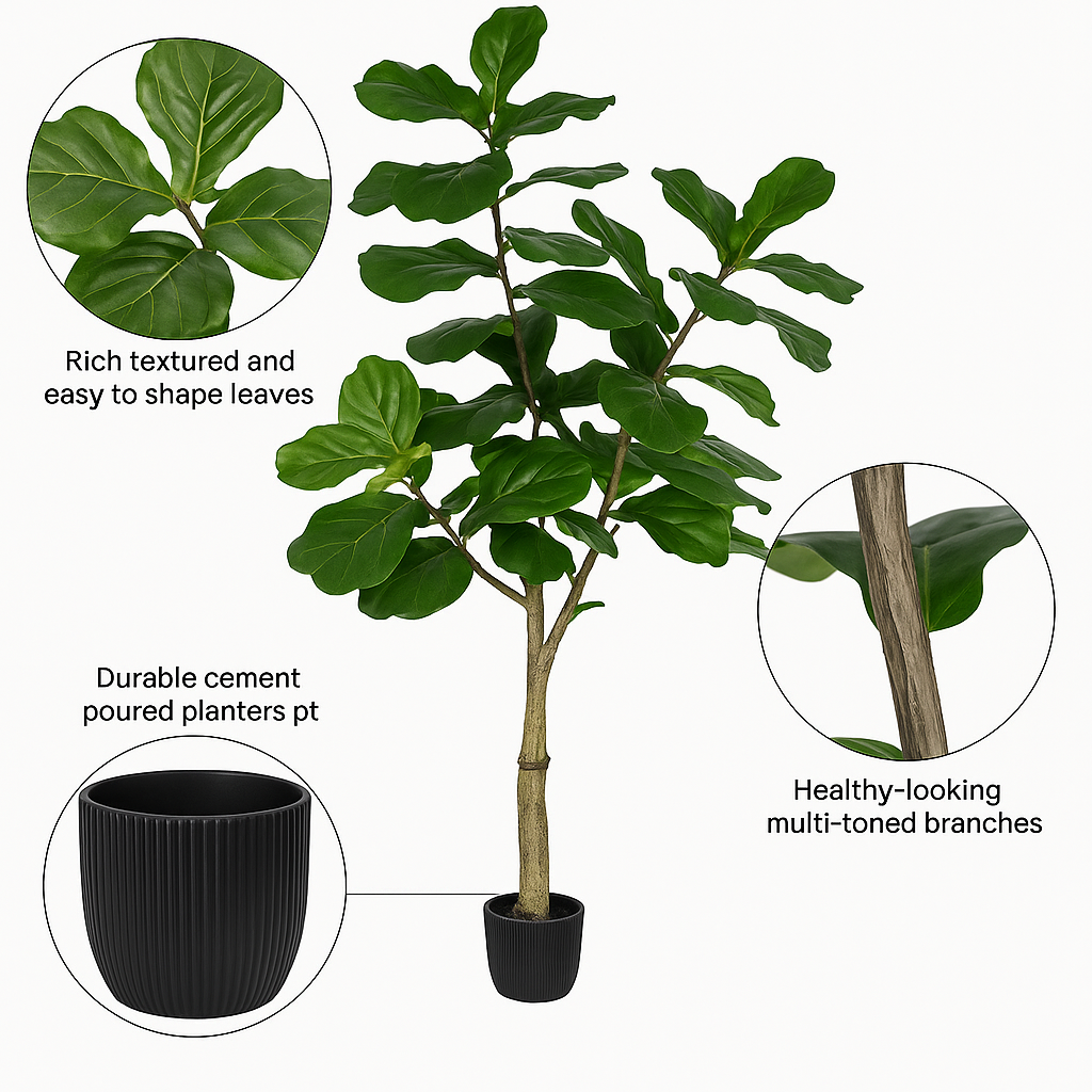 Whether you're styling a cozy reading nook, a modern office, or a bare hallway, this maintenance-free faux fiddle tree brings warmth, greenery, and a designer touch to your indoor decor—year-round.