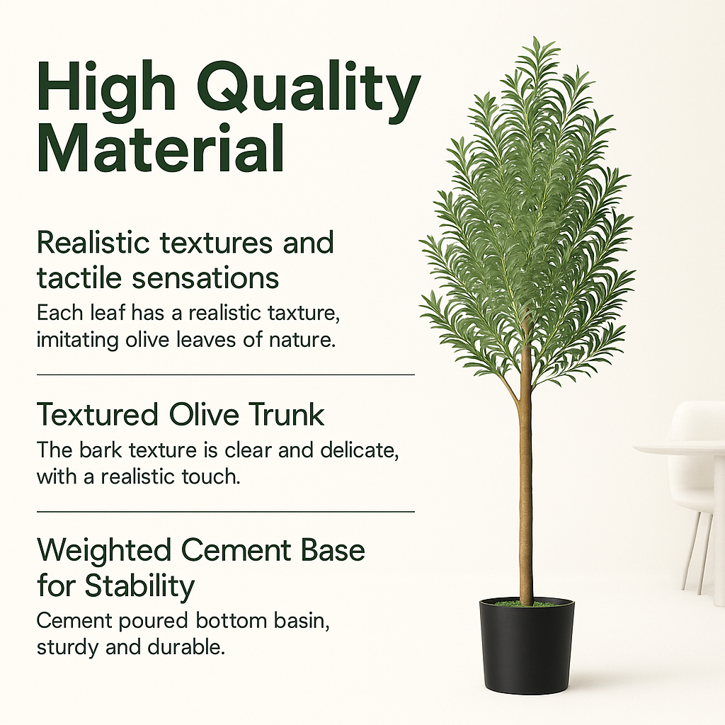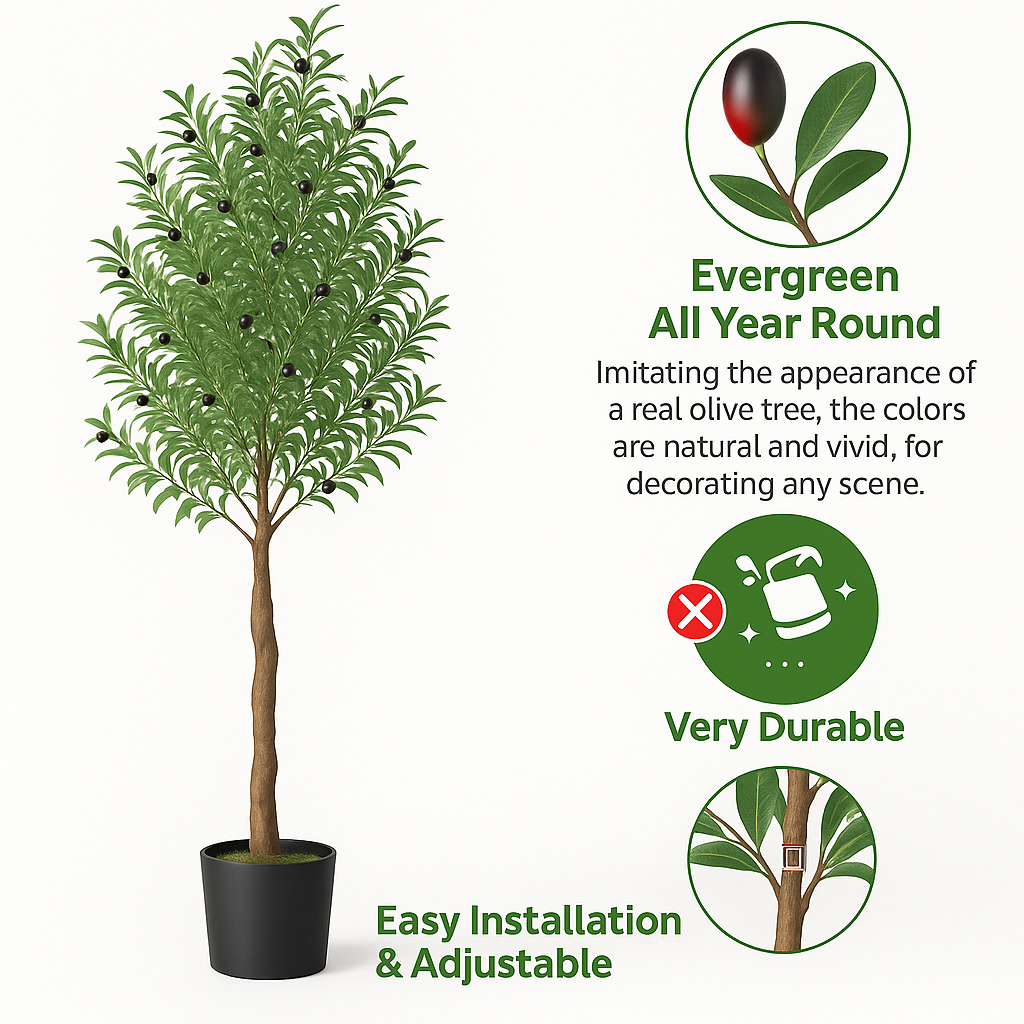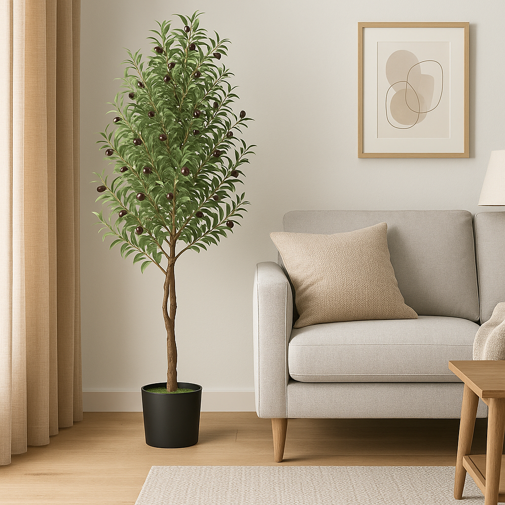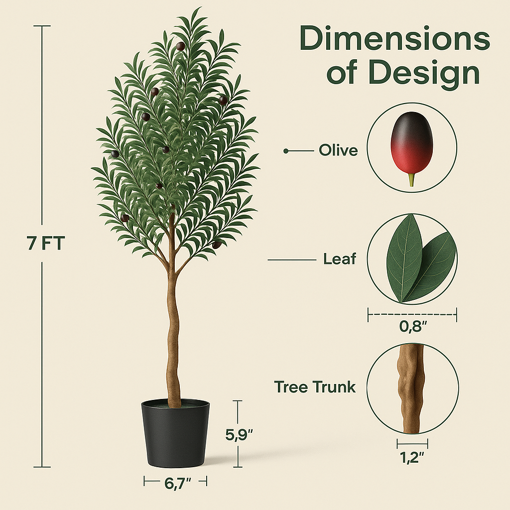 This isn't mass-produced artificial greenery β it's premium botanical artistry. With 1,584 individually crafted silk leaves and hand-placed olives, the attention to detail rivals what you'd find in the world's most exclusive hotels. The realistic trunk texture and natural color variations create the sophisticated presence that discerning homeowners expect from luxury dΓ©cor investments.