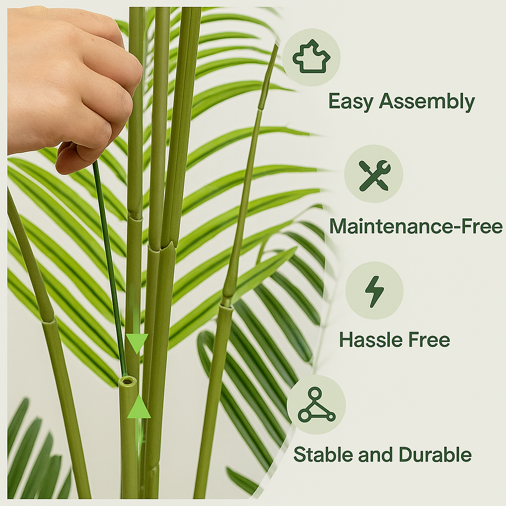 Transport your space to the tropics with ease. Whether you’re looking to enhance a beachy bedroom, revamp your office with vibrant greenery, or upgrade your patio décor, this artificial palm delivers the perfect splash of nature—without the upkeep. It’s beauty and convenience, all in one.