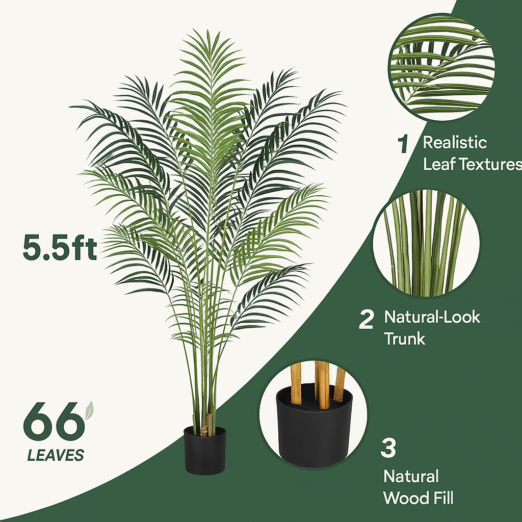 Create a sun-drenched tropical vibe anywhere with the 5.5FT Artificial Palm Tree—lush, lifelike, and zero-maintenance for indoor or outdoor elegance.