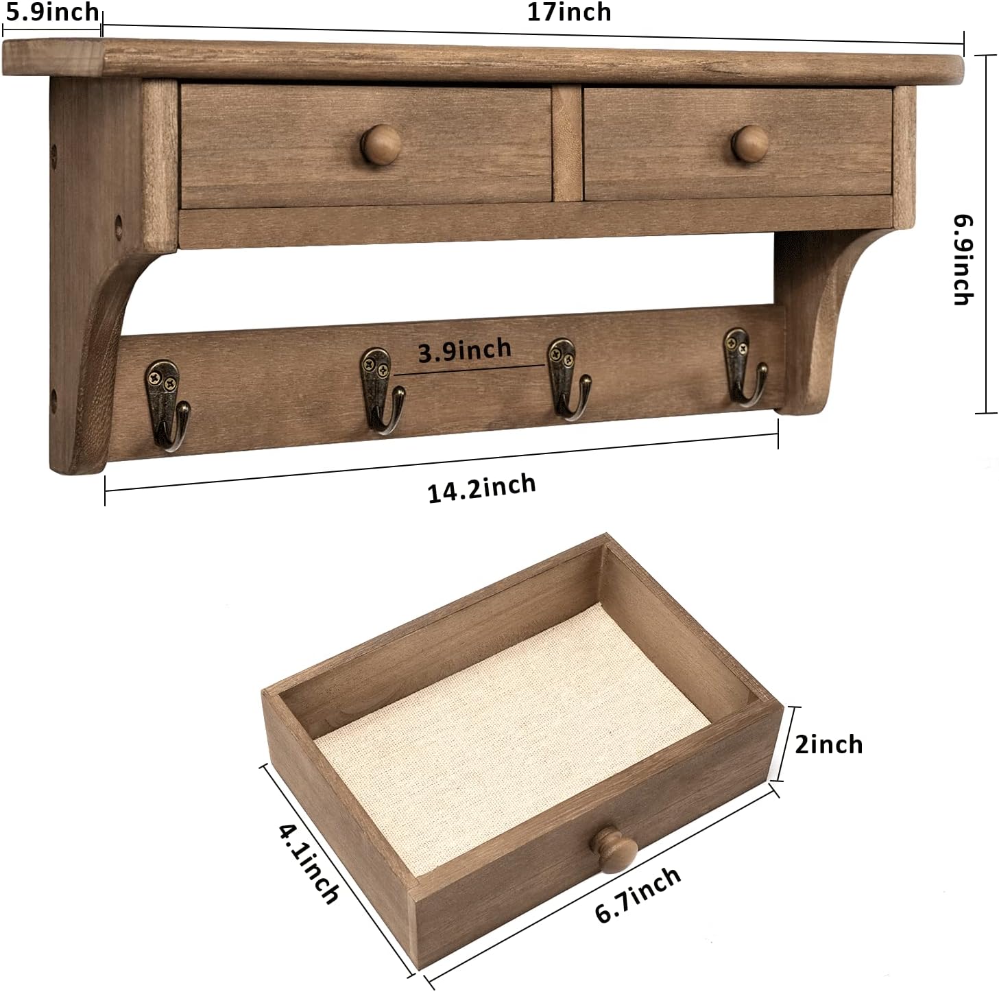 β’ Ample Storage: Fitted with retro bronze hooks, it's ideal for hanging coats, bags, scarves, and more. The 17-inch ledge provides extra space for decorations or everyday items like keys and sunglasses. π§£π§₯